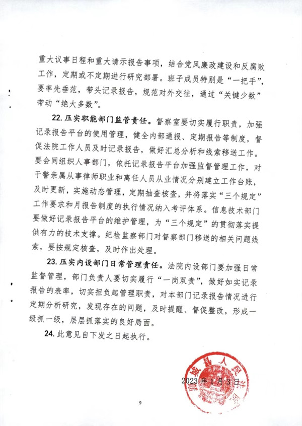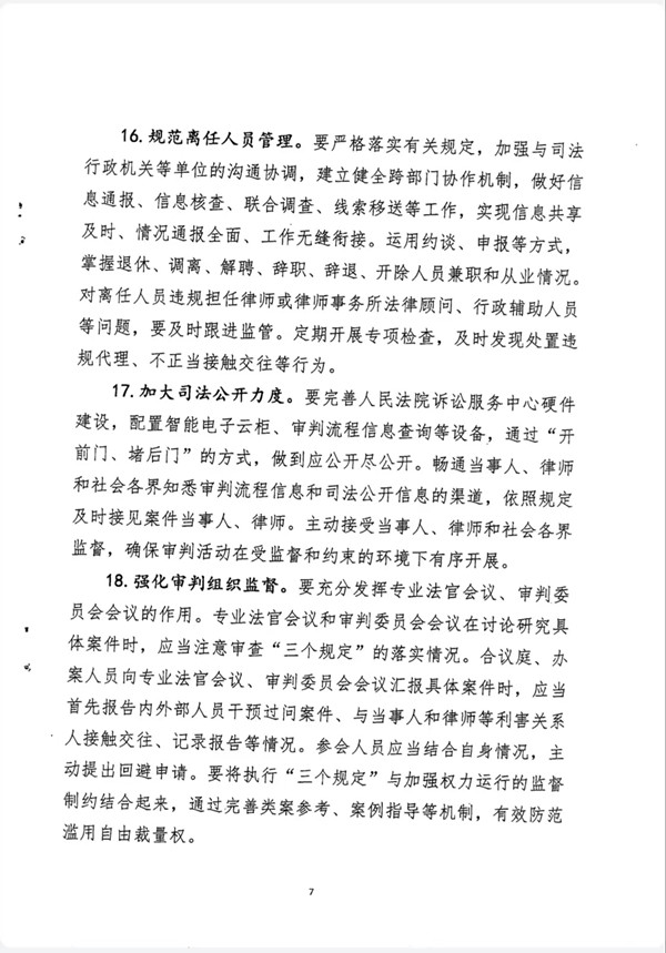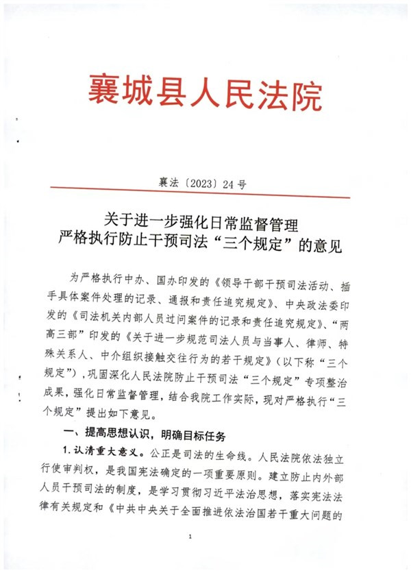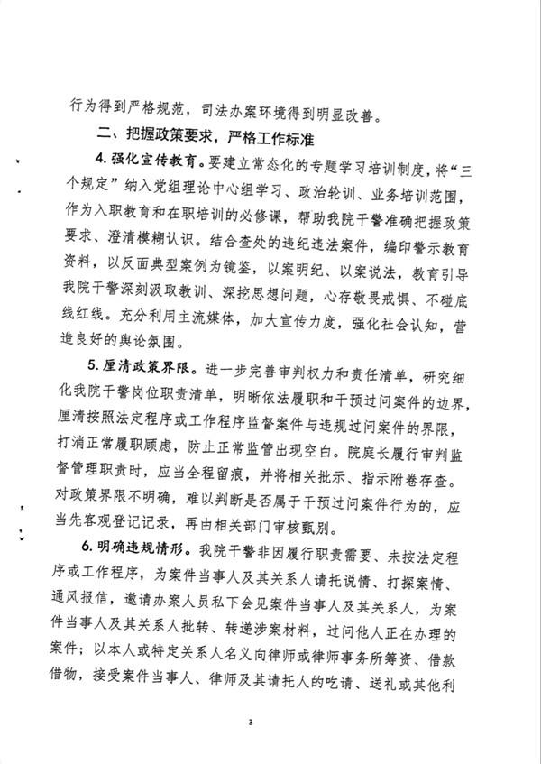 关于进一步强化日常监督管理严格执行防止干预司法“三个规定”的意见