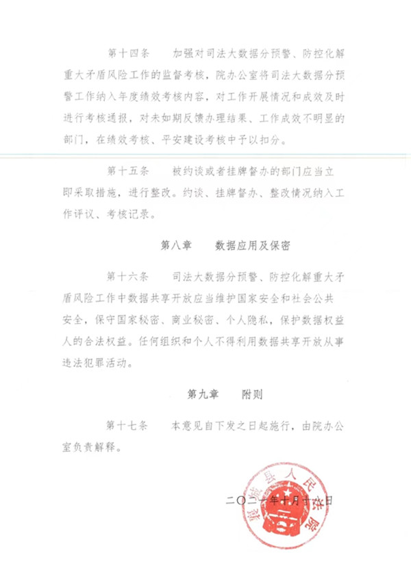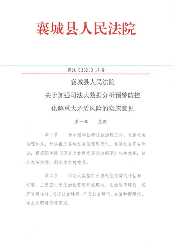 襄城县人民法院关于加强司法大数据分析预警防控化解重大矛盾风险的实施意见