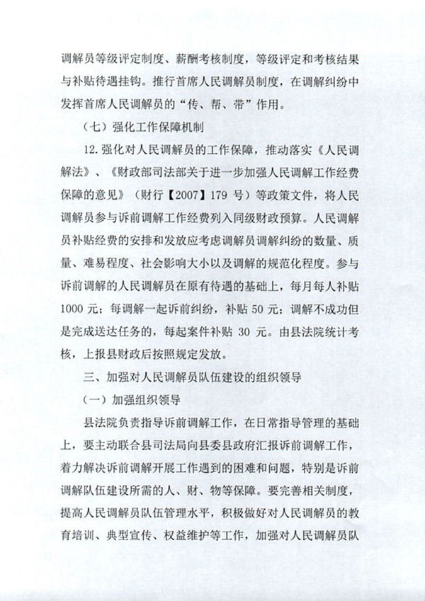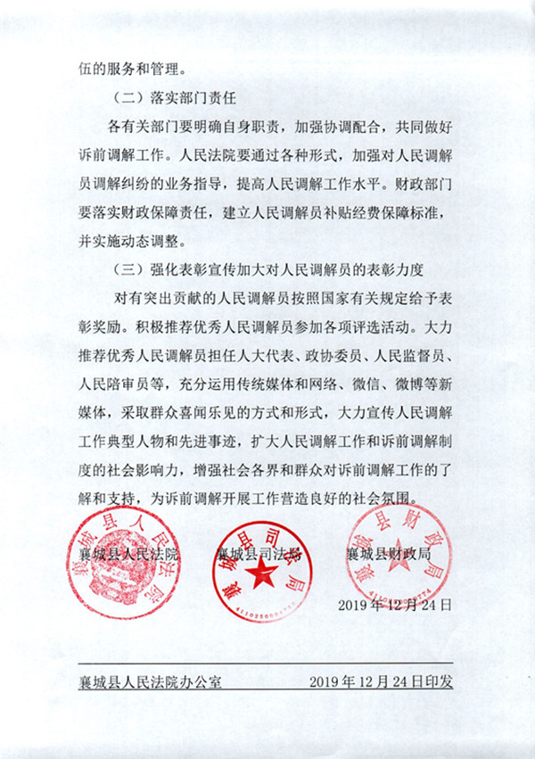 襄城县人民法院 襄城县司法局 襄城县财政局关于加强人民调解员参与诉前调解工作的若干意见