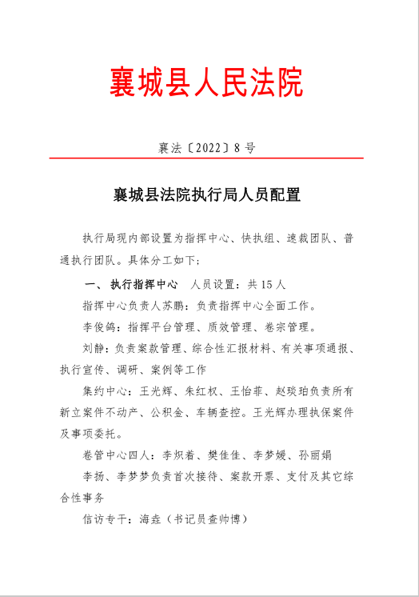 襄城县法院执行局人员配置
