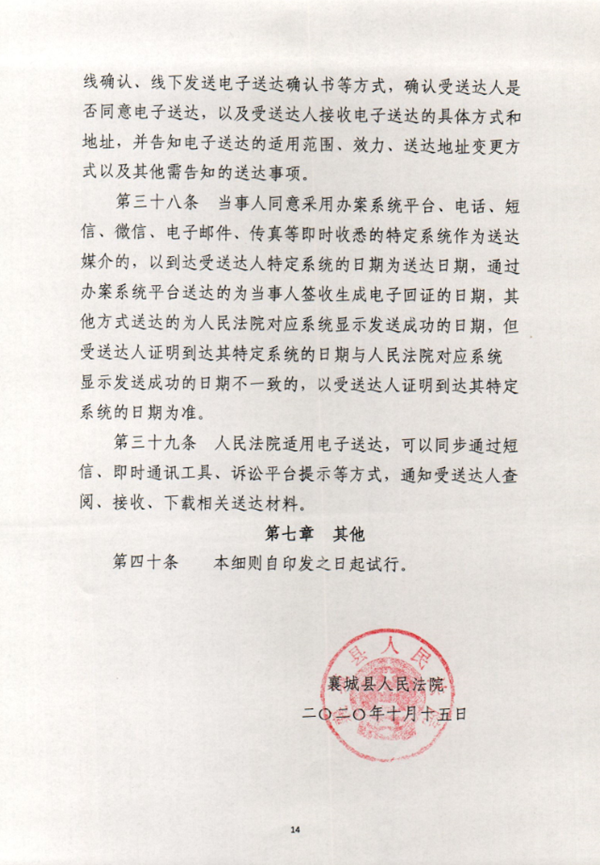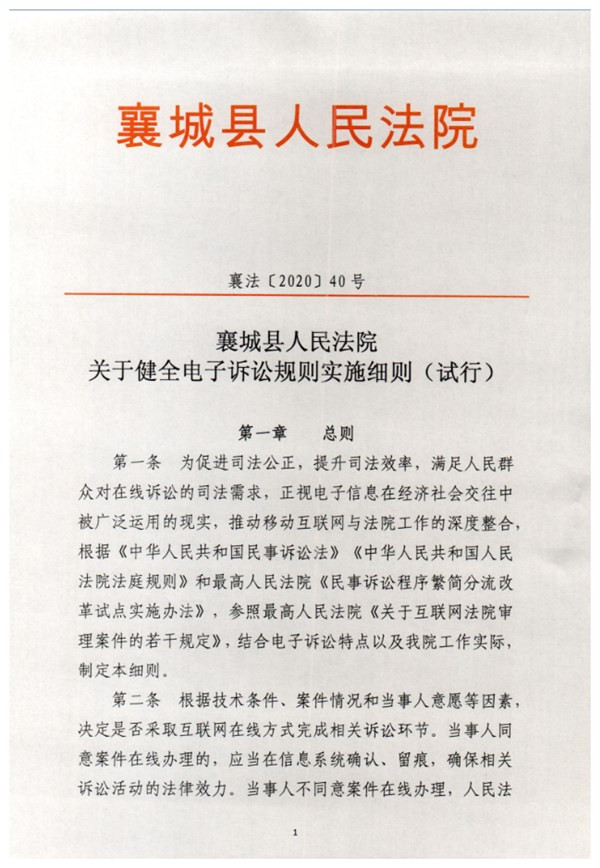襄城县人民法院关于健全电子诉讼规则实施细则(试行)