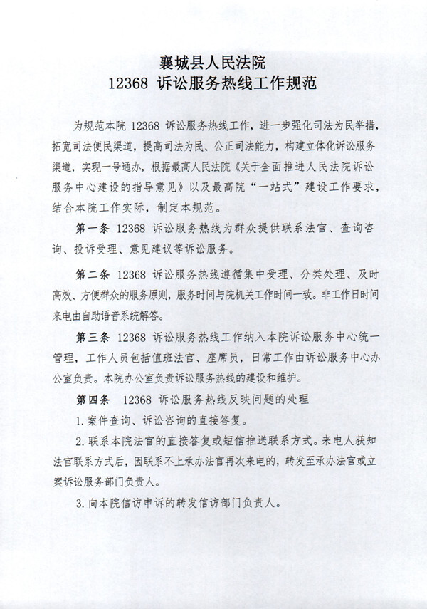 关于印发12368诉讼服务热线工作规范的通知