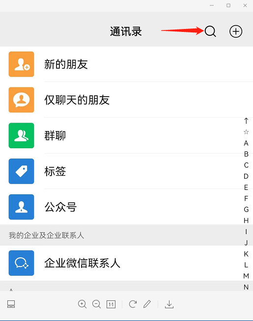 首先打开微信通讯录右边放大镜搜索“豫法e信”: