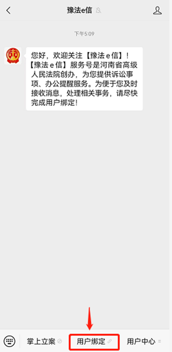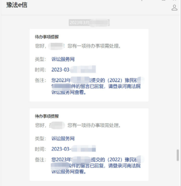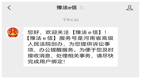 当事人“豫法e信”公众号接收电子送达
