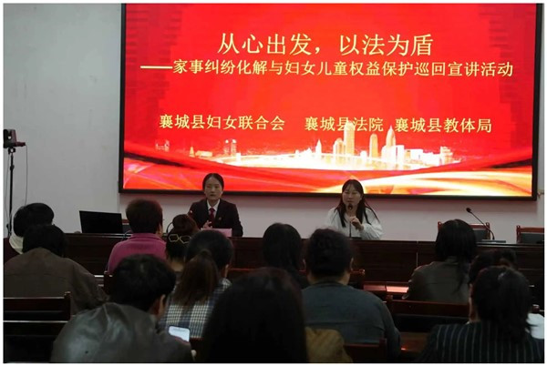 为切实提升基层家事纠纷化解能力,凝聚妇女儿童权益保护合力,9月26日,襄城县法院联合县妇联、县教体局,共同走进范湖乡,开展“从心出发 以法为盾”——家事纠纷化解与妇女儿童权益保护巡回宣讲活动。本次活动聚焦婚姻家庭类高频纠纷,通过专业法律解读、典型案例解析与实用经验分享,为基层调解员、妇联干部带来了一堂兼具专业性与实操性的法治实务课。