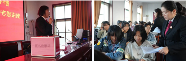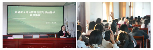 讲座围绕“未成年违法犯罪防范与权益保护”双主线展开,城关法庭庭长万方芳以贴近学生生活的真实案例为切入点,深入剖析了当前女学生群体可能面临的校园欺凌、社交风险、出行安全和网络交友陷阱等多类风险,将抽象法条转化为生动易懂的普法语言。通过以案说法、互动问答等形式,万庭长重点解读了《未成年人保护法》《预防未成年人犯罪法》中与女生权益密切相关的条款,帮助学生明确法律底线与行为边界,树立正确的法治观念。