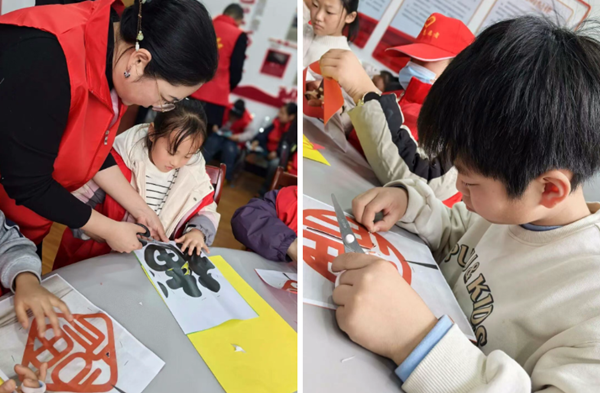 剪纸活动开始,志愿者们讲述了冬至的文化内涵与习俗并示范如何剪纸。孩子们选好自己心仪的图案,仔细沿着步骤认真操作,一幅幅生动有趣的作品便在巧手中剪出。