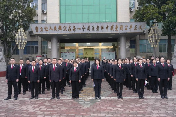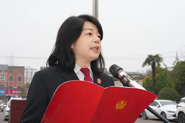 升旗礼毕,党组书记、院长张亚发表致辞。张亚院长简要回顾了2025年全院在服务大局、执法办案、司法为民等方面取得的扎实成效,并对全体干警的辛勤付出表示感谢。她强调,2026年是“十五五”规划开局之年,全院上下须以“开局即决战、起步即冲刺”的精神状态,凝聚“九牛爬坡”的合力,锐意进取,唯实争先,奋力推动法院各项工作高质量发展,为县域发展提供更加有力的司法保障。
