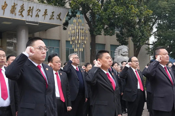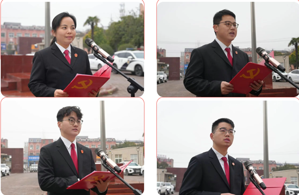仪式尾声,全体党员干警面向鲜红党旗,高举右拳、庄严宣誓。“我志愿加入中国共产党,拥护党的纲领,遵守党的章程……”铿锵誓言久久回荡,这既是对入党初心的重温叩问,更是对践行司法为民使命的庄严承诺,进一步凝聚了党员干警听党话、跟党走、守初心、担使命的思想共识。