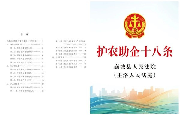 如今,这些困扰有了清晰而温暖的“标准答案”。襄城县人民法院王洛法庭立足“护农兴襄·枫调企顺”的品牌定位,深入梳理农产品深加工企业的法律风险点,针对轩康农业从原料采购到产品销售的全产业链需求,创新推出《护农助企十八条|王洛法庭服务河南轩康农业专项清单》。(以下简称《护农助企十八条》)